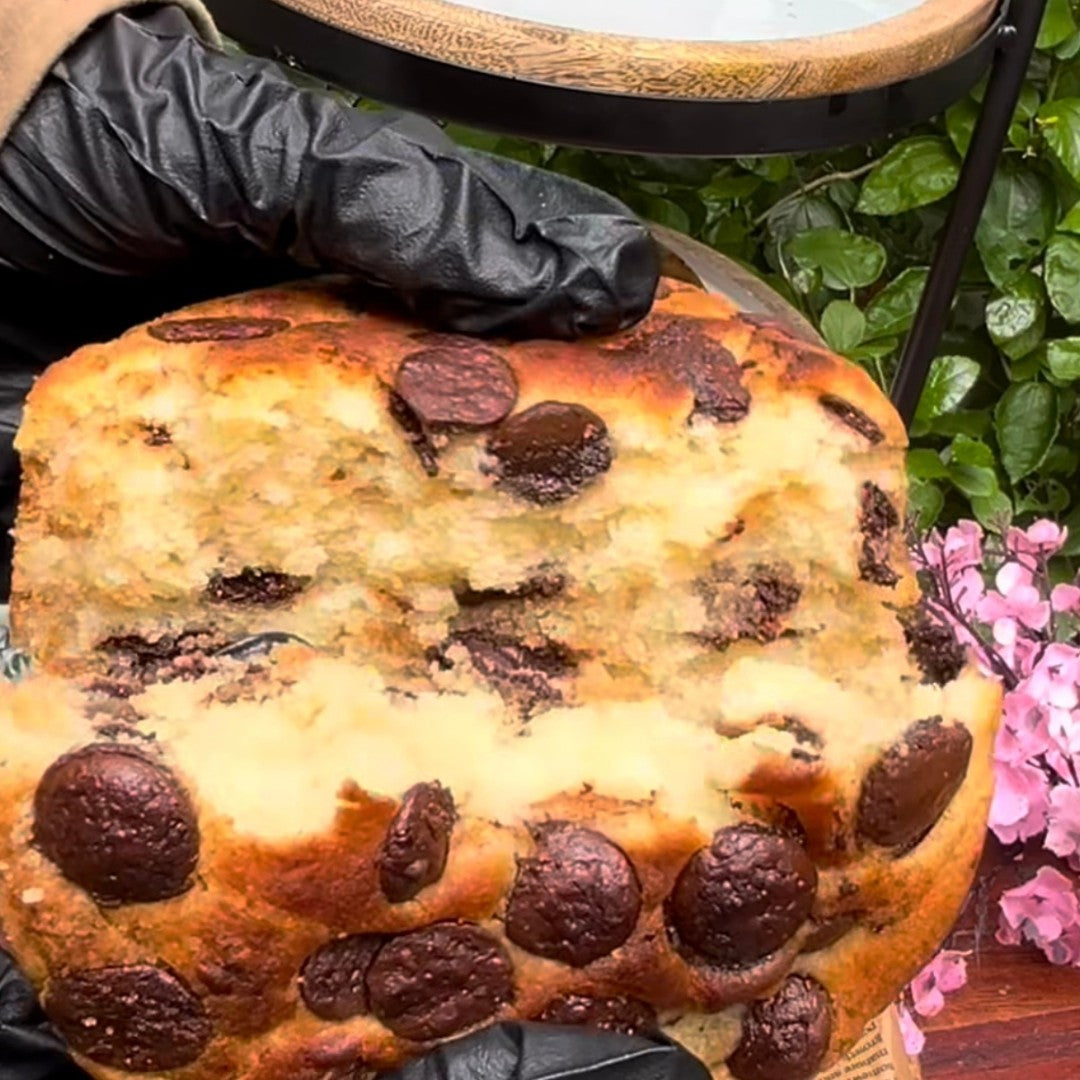A luxurious dessert combines a tender with decadent chocolate bursts in every bite.